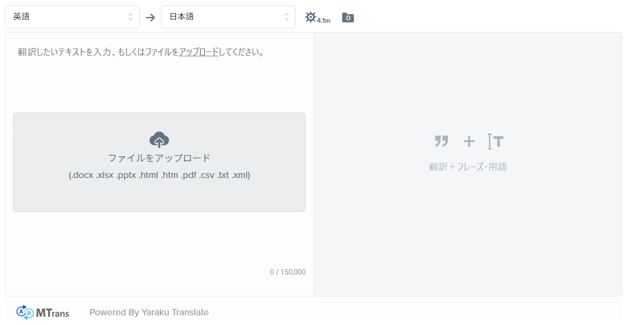 弊社の自動翻訳製品のMTrans TeamにもPDF翻訳機能が搭載されています。PDFファイルをアップロードして翻訳できます。テキストベースのPDFとスキャンPDFの両方に対応しています。自動翻訳を行う翻訳エンジンとしてGoogle、Microsoft、NAVER Papago、OpenAI、Claudeから選択できます。レイアウトを保ったまま翻訳され、翻訳済みファイルは、編集可能なWordファイルとしてダウンロードできます。ファイルサイズの上限は45MBです。